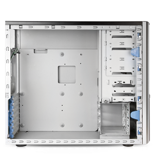 PC617 机箱提供专利的免工具设计,方便安装,并提供选配的 2 槽或 4 槽内部硬盘架,实现最大的配置灵活性。
