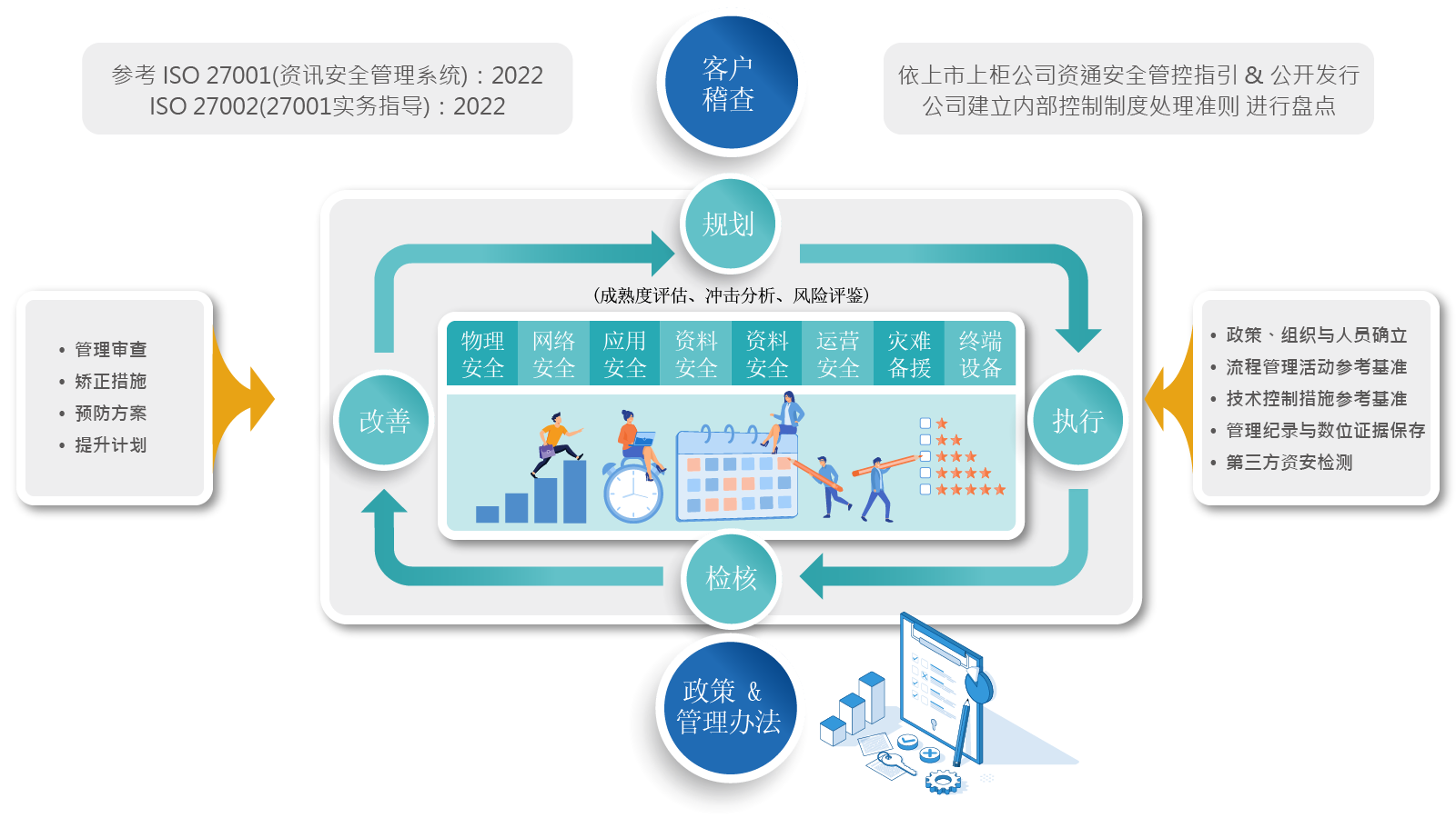 勤诚高度重视信息安全,积极落实各种信息防护作为,除了依循相关资安规范与作业程序,明定信息安全政策,更成立信息安全部门,对信息安全的风险进行专责管理与管制。透过完善的信息安全风险管理机制,过去勤诚并未发生过造成营运中断或导致客户重大损失的信息安全事件。